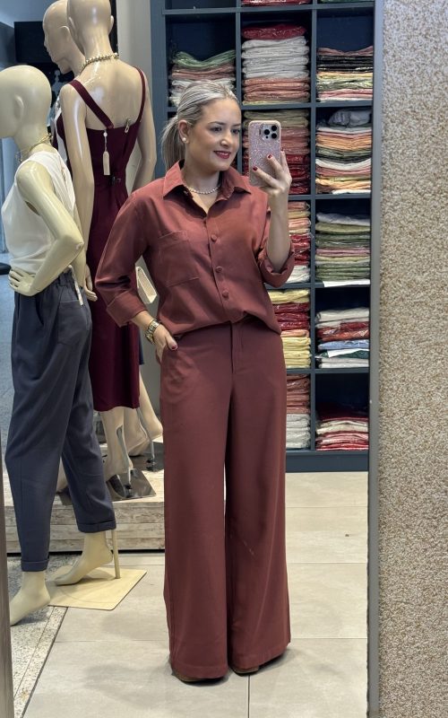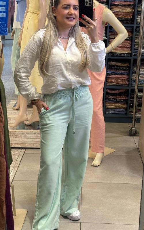 A Calça Suzana traz o equilíbrio perfeito entre leveza e sofisticação para o seu dia a dia. Com um corte reto e soltinho, ela entrega máximo conforto e um movimento fluido que alonga a silhueta.