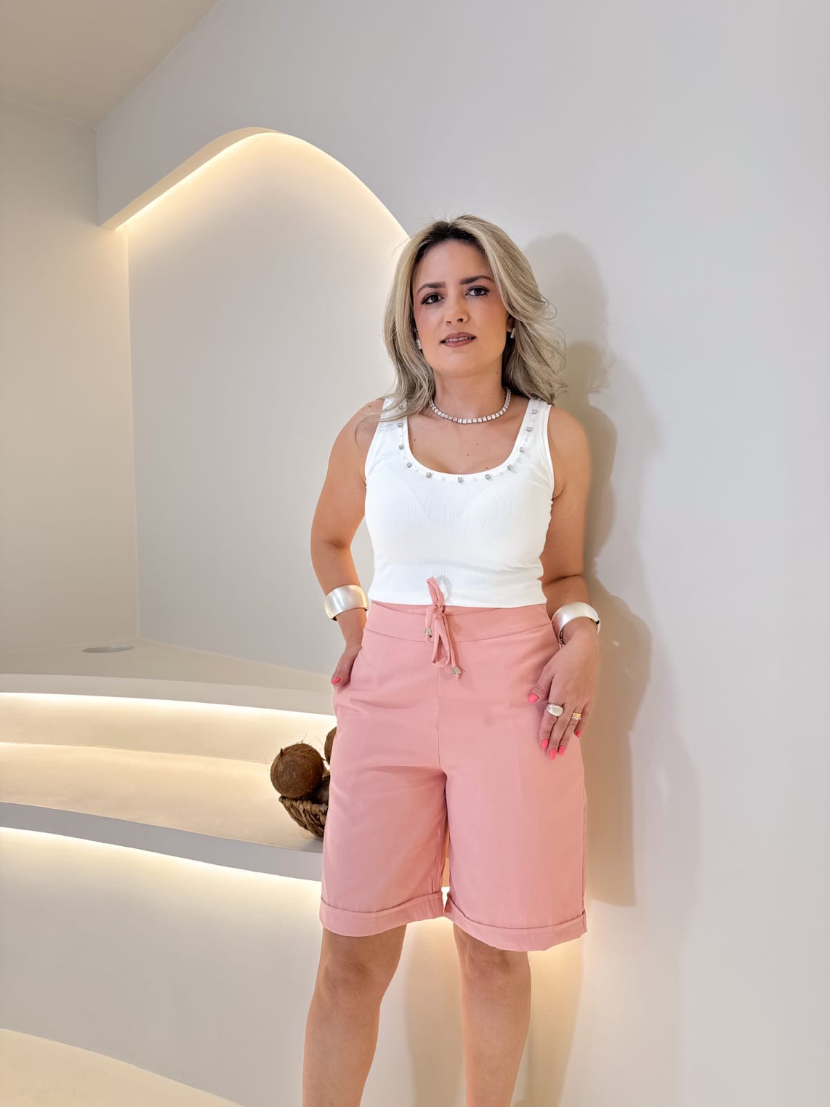 A Regata Karina traz sofisticação imediata com o brilho dos cristais aplicados no decote. Em malha canelada, ela entrega um ajuste perfeito e confortável ao corpo. É a peça ideal para iluminar o visual básico com um toque de feminilidade.